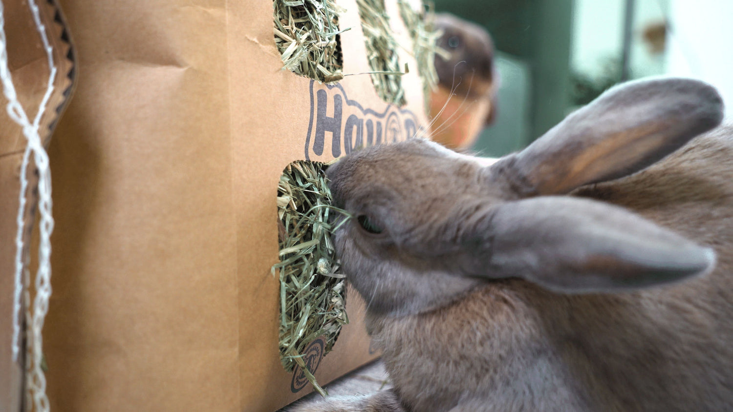 Did we mention that rabbits can chew on the packaging? Being able to chew and play as they eat provides bunnies with mental stimulation, stress relief, dental maintenance, and enjoyment!