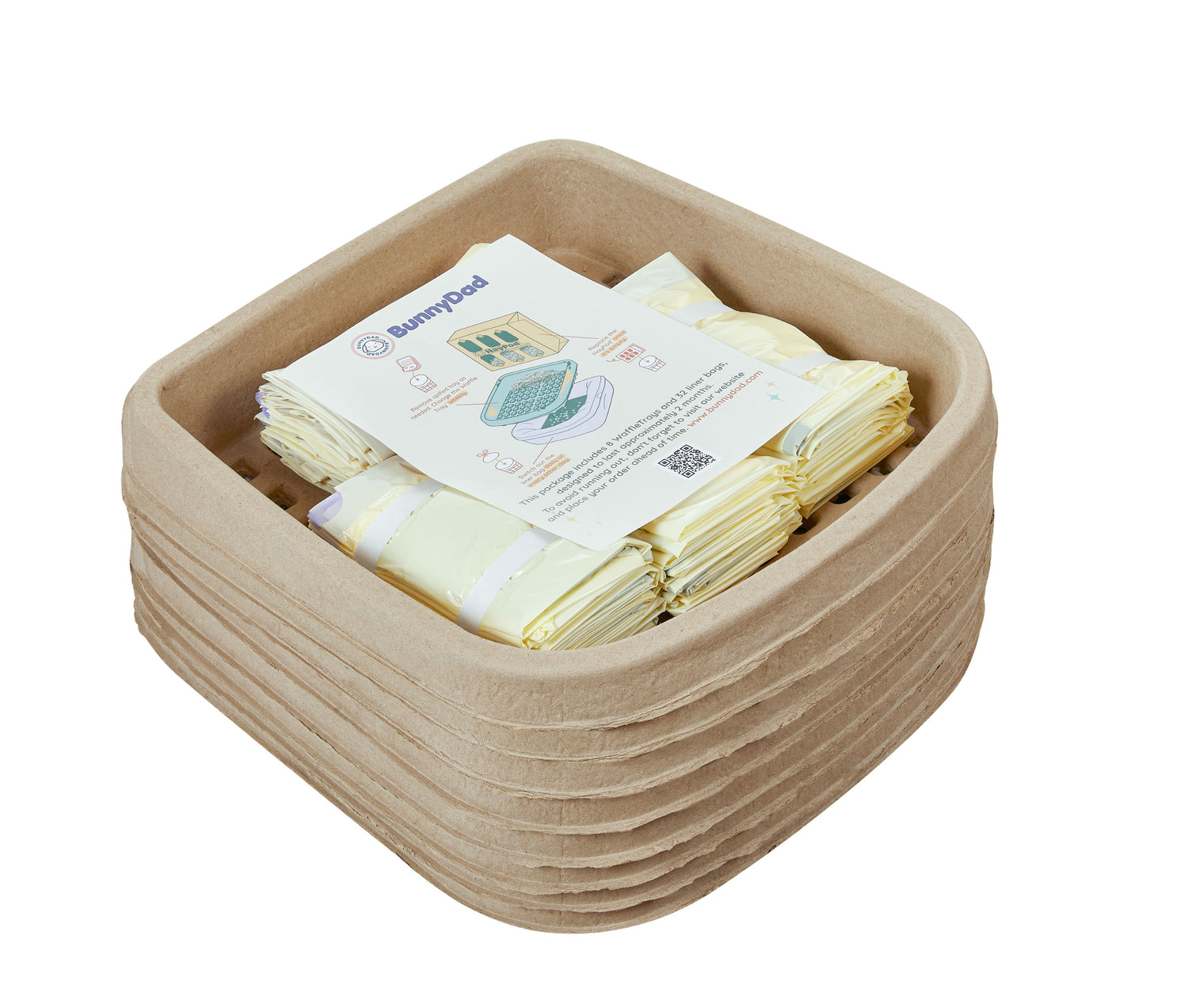 Set yourself up for success with a 2-month supply of BunnyLet WaffleTrays and custom-fitted Bamboo Charcoal Liner Bags.