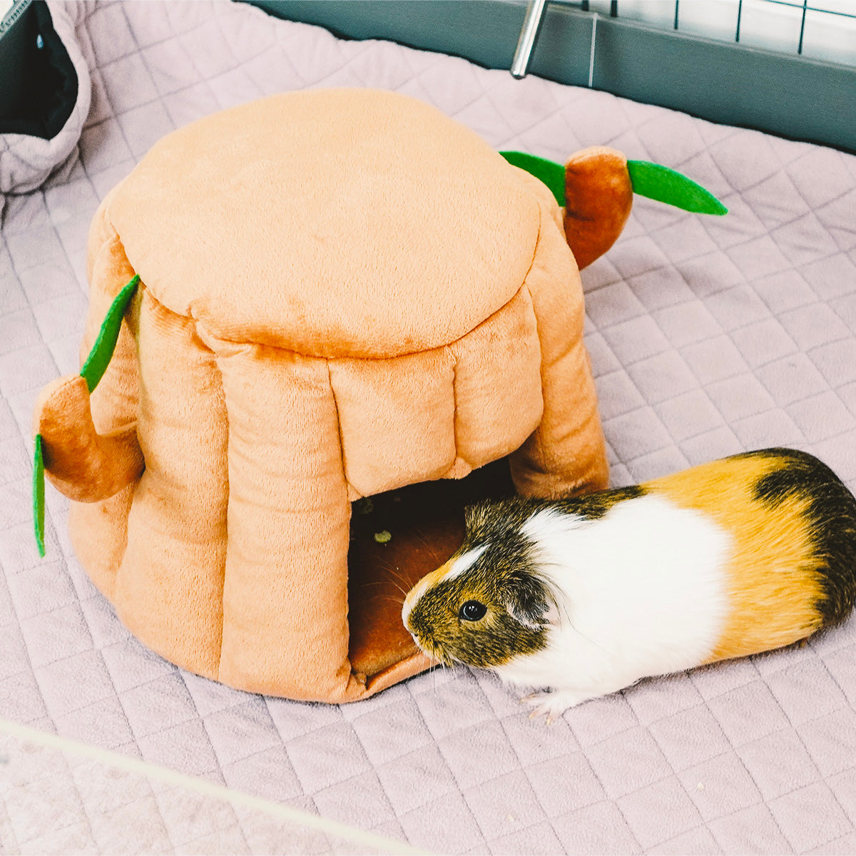 Introducing the Tree Stump Hidey! It's a cozy and secure hideaway designed to look like the cutest plush tree stump. Made from soft, non-toxic materials, it provides a comfortable space for your guinea pig to rest and play. The lifelike design adds a touch of nature to their habitat. Give your furry friend the perfect retreat with this adorable plush hidey!