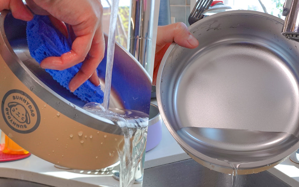 Wash the bowl daily to keep it clean and hygienic. Use a mild dishwashing soap. Rinse the bowl with warm water. Apply a small amount of dishwashing soap to a sponge or soft cloth, then gently scrub the inside and outside of the bowl. Rinse thoroughly with warm water to remove all soap residue. Dry the bowl with a clean towel or allow it to air dry. Avoid using abrasive cleaners or scrubbers as they can scratch the stainless steel surface. Hand wash only; there is no need for a dishwasher, as the high temperatures and harsh detergents can damage the bowl’s insulation and finish.