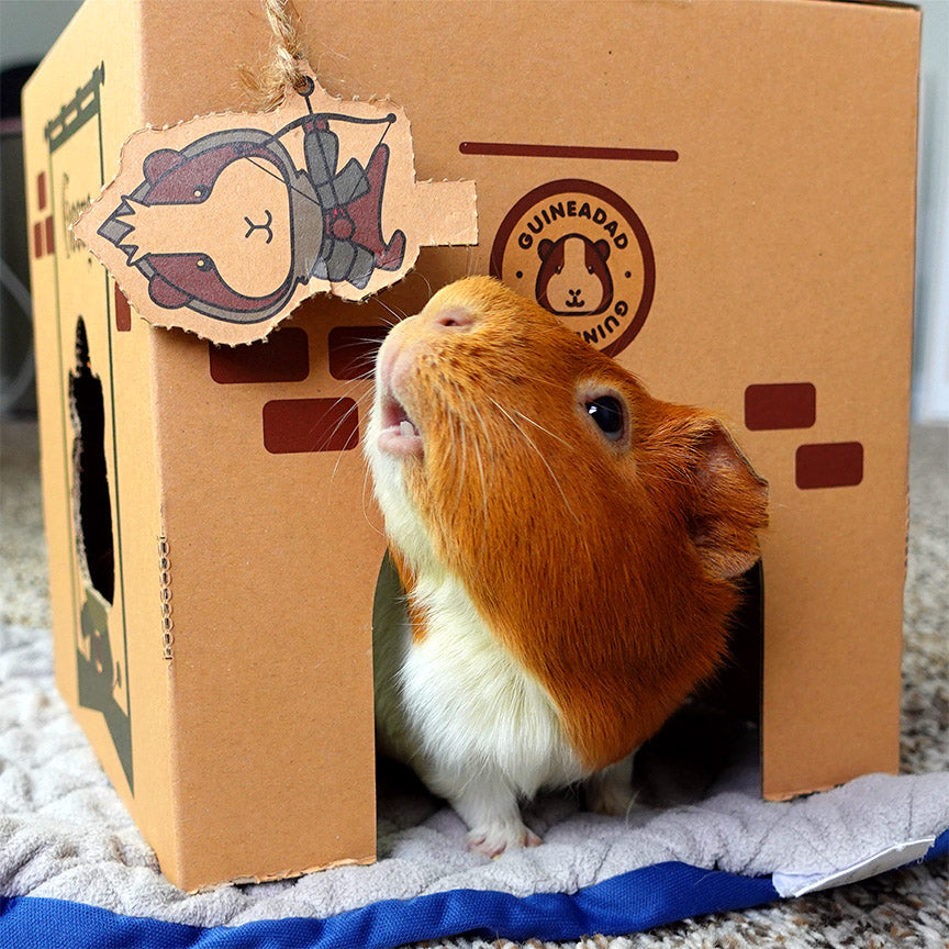 GuineaDad Crunchy Condo can also be used as a hideout and toy for your guinea pigs to gnaw on to help promote healthy and normal dental wear. Dental health is an important element to be weary of when caring for guinea pigs. That's why we designed a reusable, recyclable, and non-toxic cardboard on all our hidey products so they are safe for guinea pigs to ingest. It's a guinea pig cardboard house that's edible!
